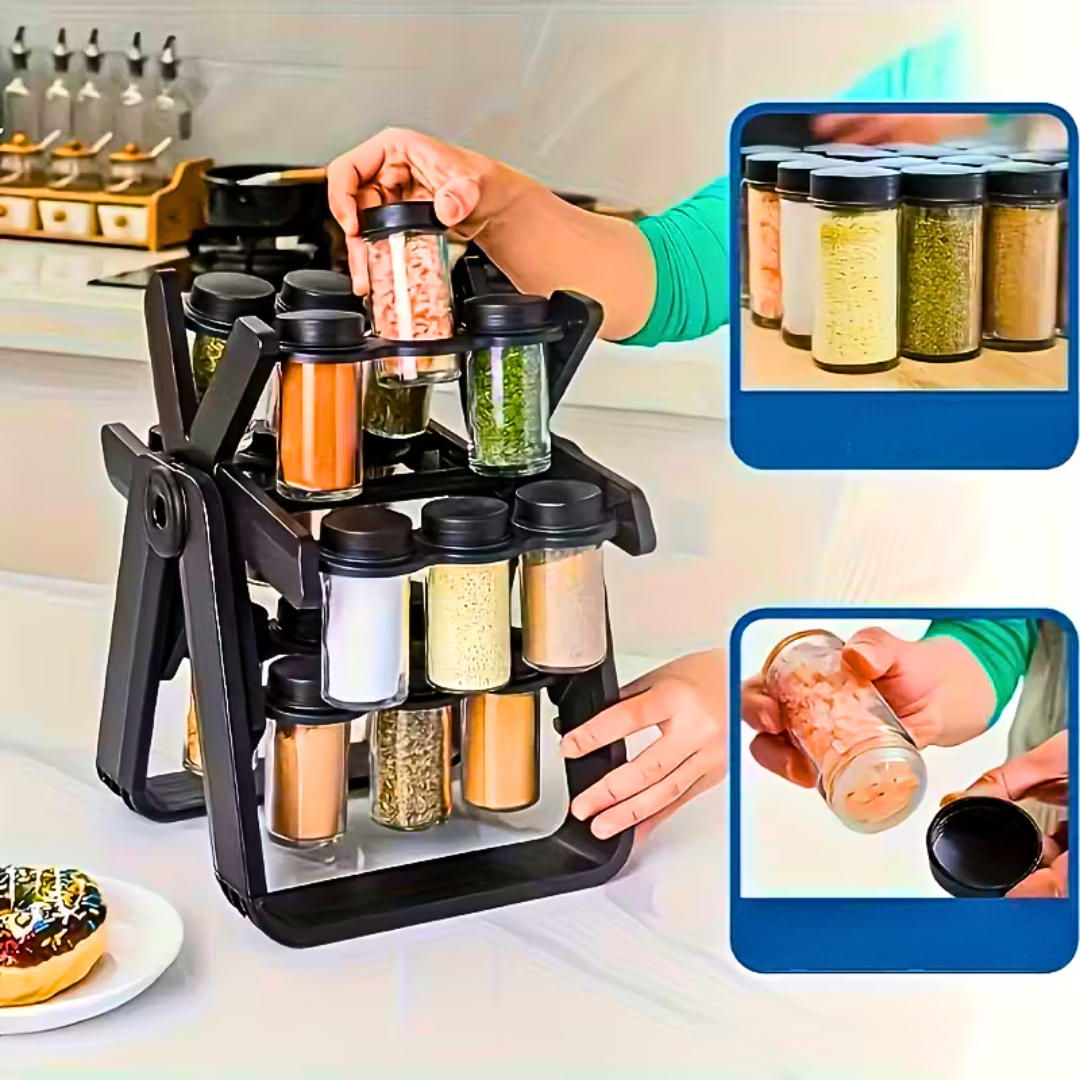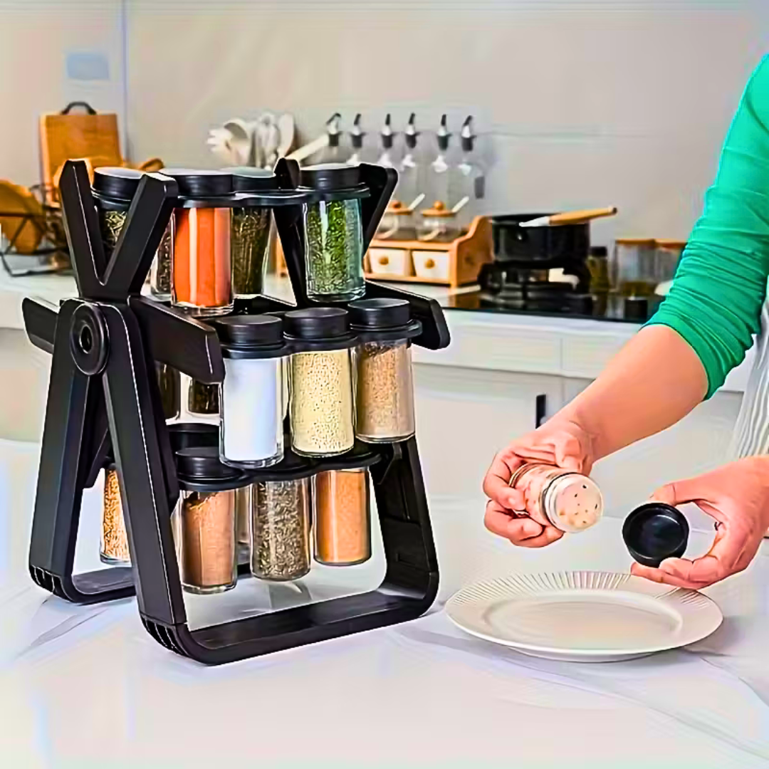 Zamisli kuhinju u kojoj svaki začin ima svoje mesto. Nema više traženja, otvaranja fioka, prosipanja ili onog „znam da negde imam origano…“. Umesto toga — 18 staklenih bočica uredno složenih, spremnih za akciju u svakom trenutku.