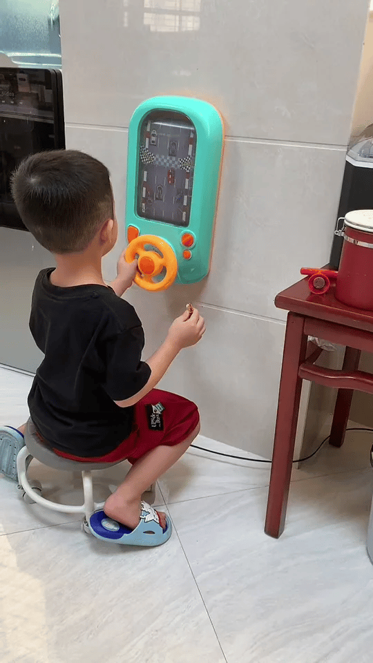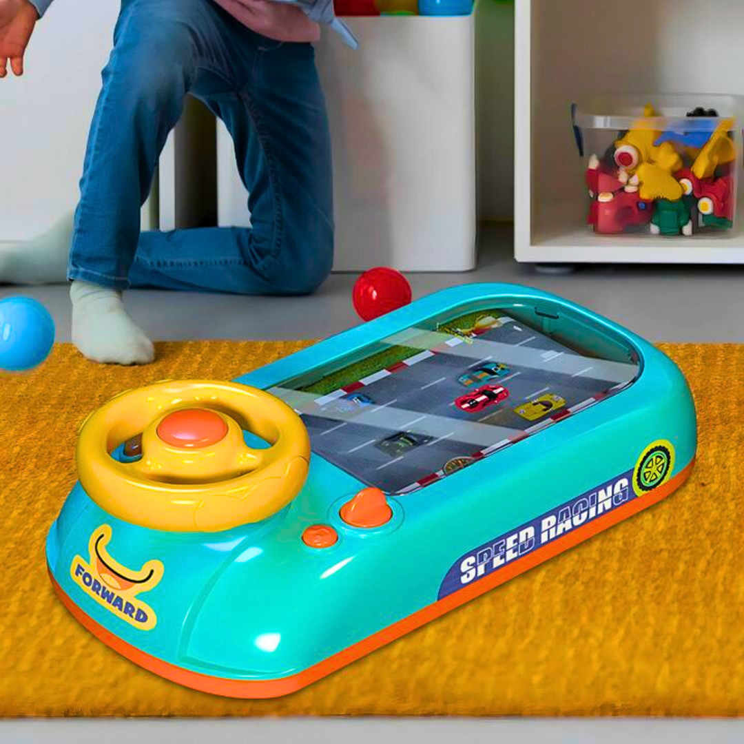 Dečija trkačka konzola sa volanom pretvara svaki trenutak u malu trku na ekranu.