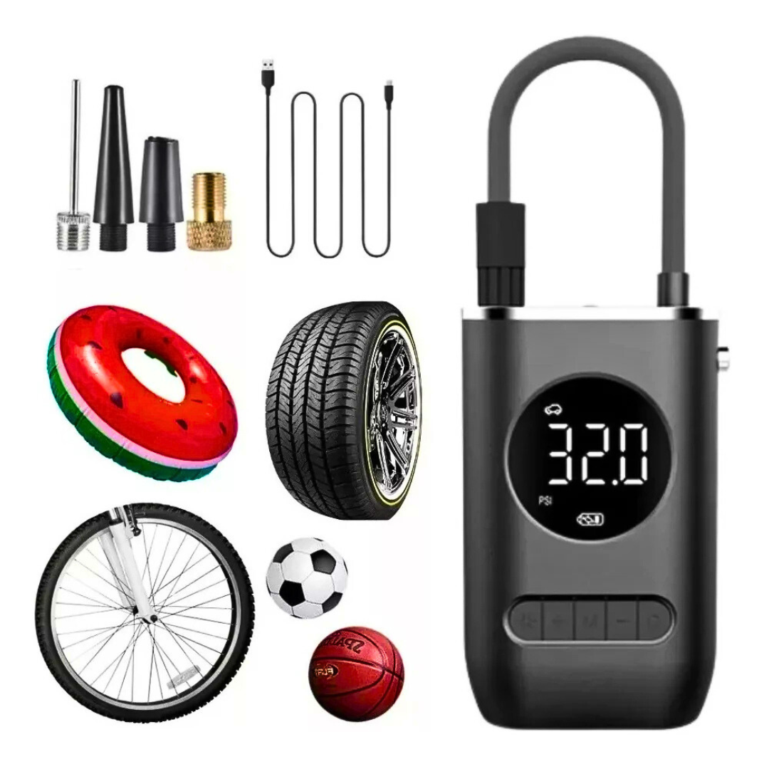 Ugrađeno LED svetlo za noćne situacije, više nastavaka za gume, lopte i bicikle – i brzo punjenje u svega par sekundi! Savršen dodatak za svako vozilo.