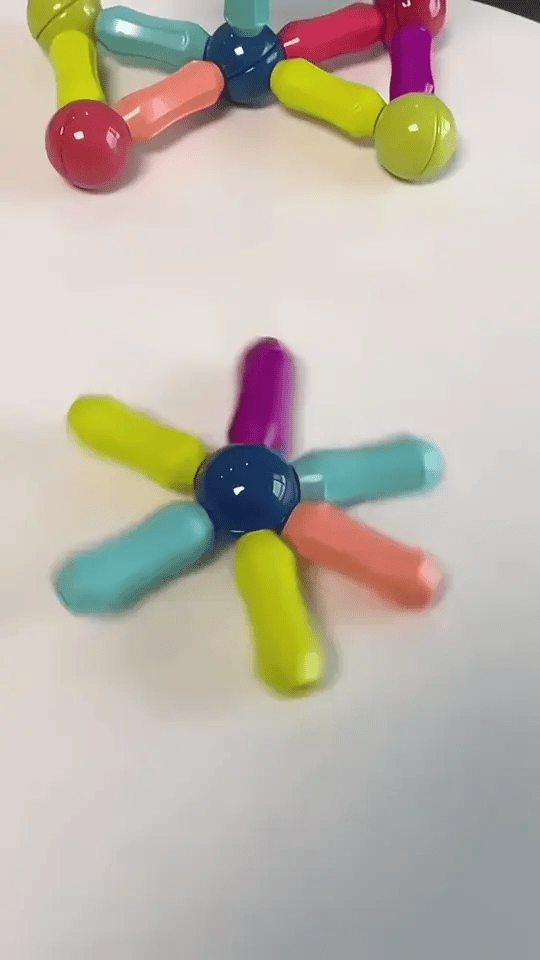 Dok se delovi sami spajaju u prelepu šarenu zvezdicu, dete instinktivno otkriva koliko je zabavno graditi nešto „svoje“. Svaki klik magneta budi novu ideju — danas zvezdica, sutra točak, raketa ili potpuno novi oblik koji samo dečja mašta može da smisli.