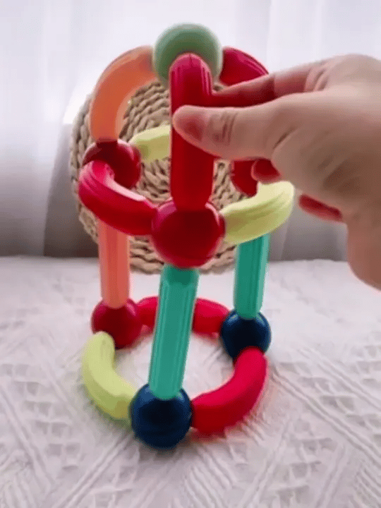 Malo po malo, svaki magnetni štapić pronalazi svoje mesto. Dete polako podiže svoju prvu „kulu“, a svaki novi sprat donosi još veći osmeh. Tu se rađa kreativnost – iz jednostavnih delova nastaje nešto što raste, menja se i živi u njihovoj mašti.