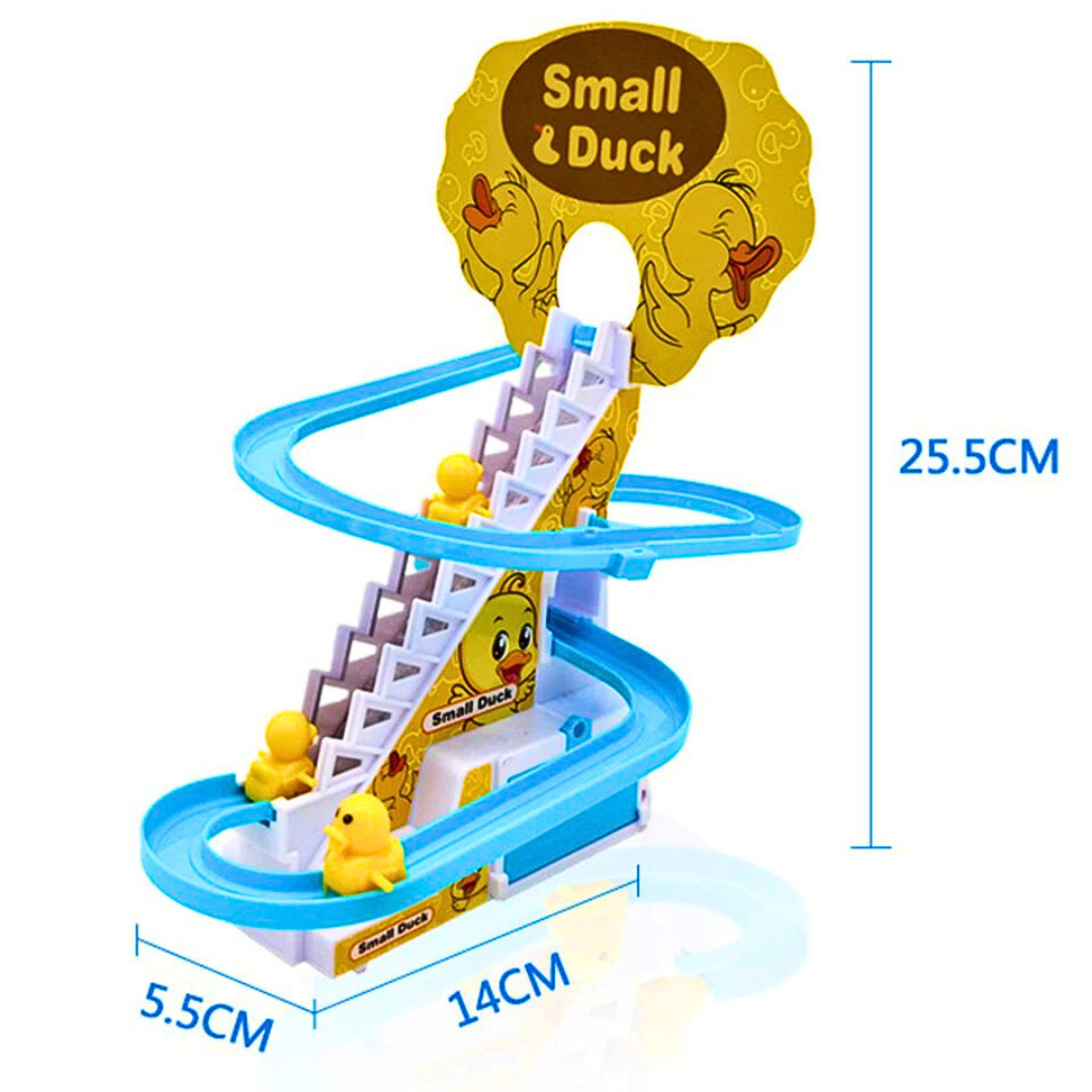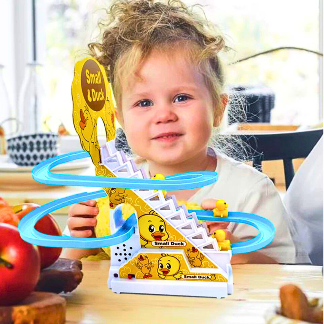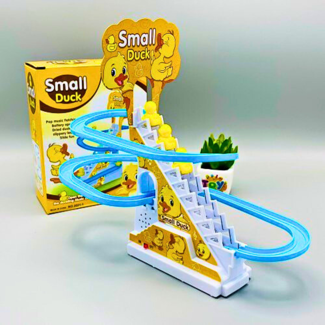 Ovaj interaktivni tobogan dizajniran je tako da mini patkice same kruže po spiralnoj stazi – penju se pomoću pokretne trake, a zatim klize nazad niz tobogan, stvarajući neprekidnu zabavu. Ugrađena melodija i svetlosni efekti dodatno oživljavaju igru i privlače pažnju mališana.