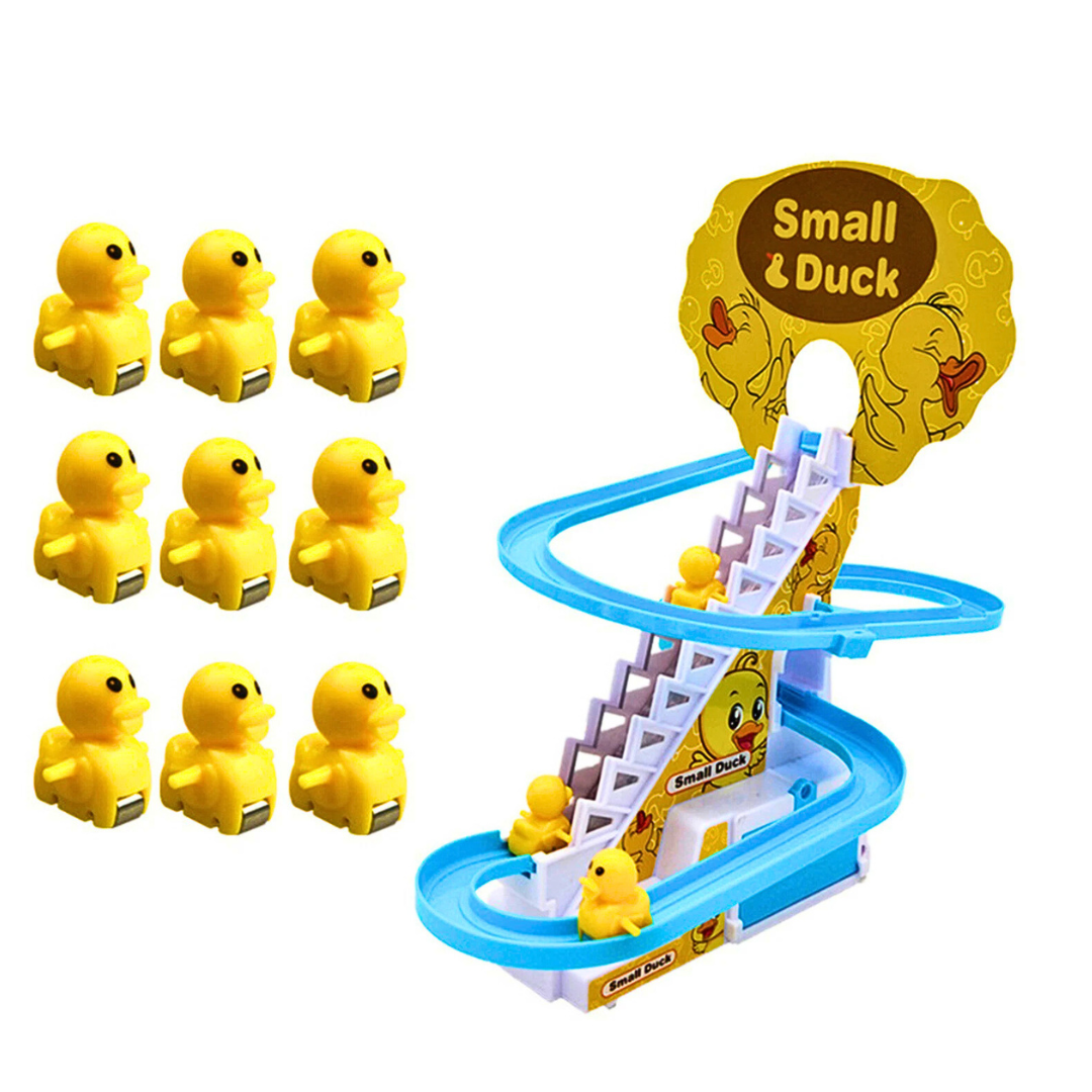 Gledaj kako se male patkice neprestano penju i klize niz spiralni tobogan! 🚀